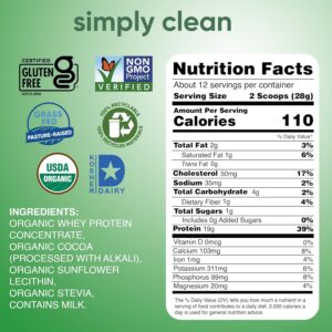 Simply Tera’s Organic Whey Protein Powder – Grass Fed Whey Protein Powder Without Artificial Sweeteners, Clean, Non-GMO, Gluten-Free – Dark Chocolate, 12 Oz.