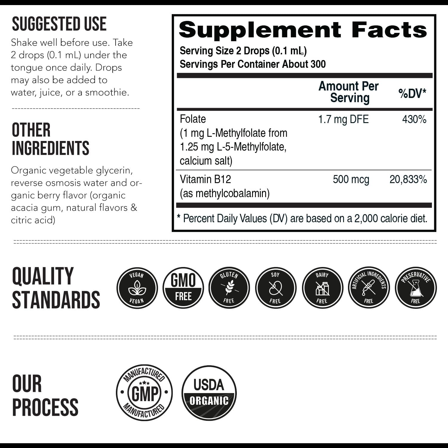 BIOLOGICALLY ACTIVE FORM OF FOLATE (1 mg or 1000 mcg) : L-Methylfolate is the biological active form of Folate. It immediately absorbs into bloodstream and requires no processing by the body. The 1 mg dose is ideal to address daily Folate nutritional needs.*