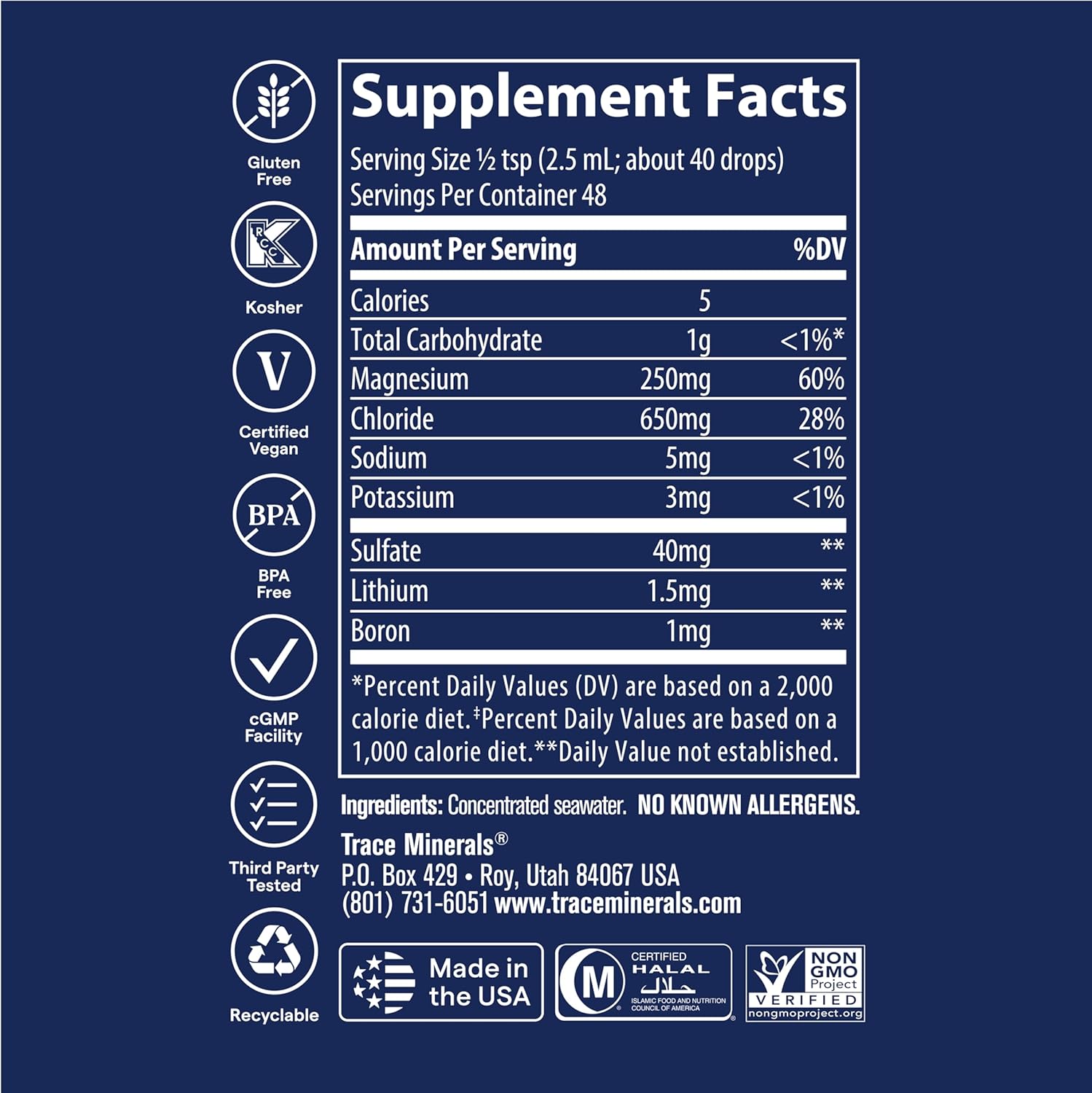 - Sustainably Harvested in the USA: For over 50 years, ConcenTrace Trace Mineral Drops have been harvested from a single source in the USA. The minerals are ionic, which makes them easier to absorb.